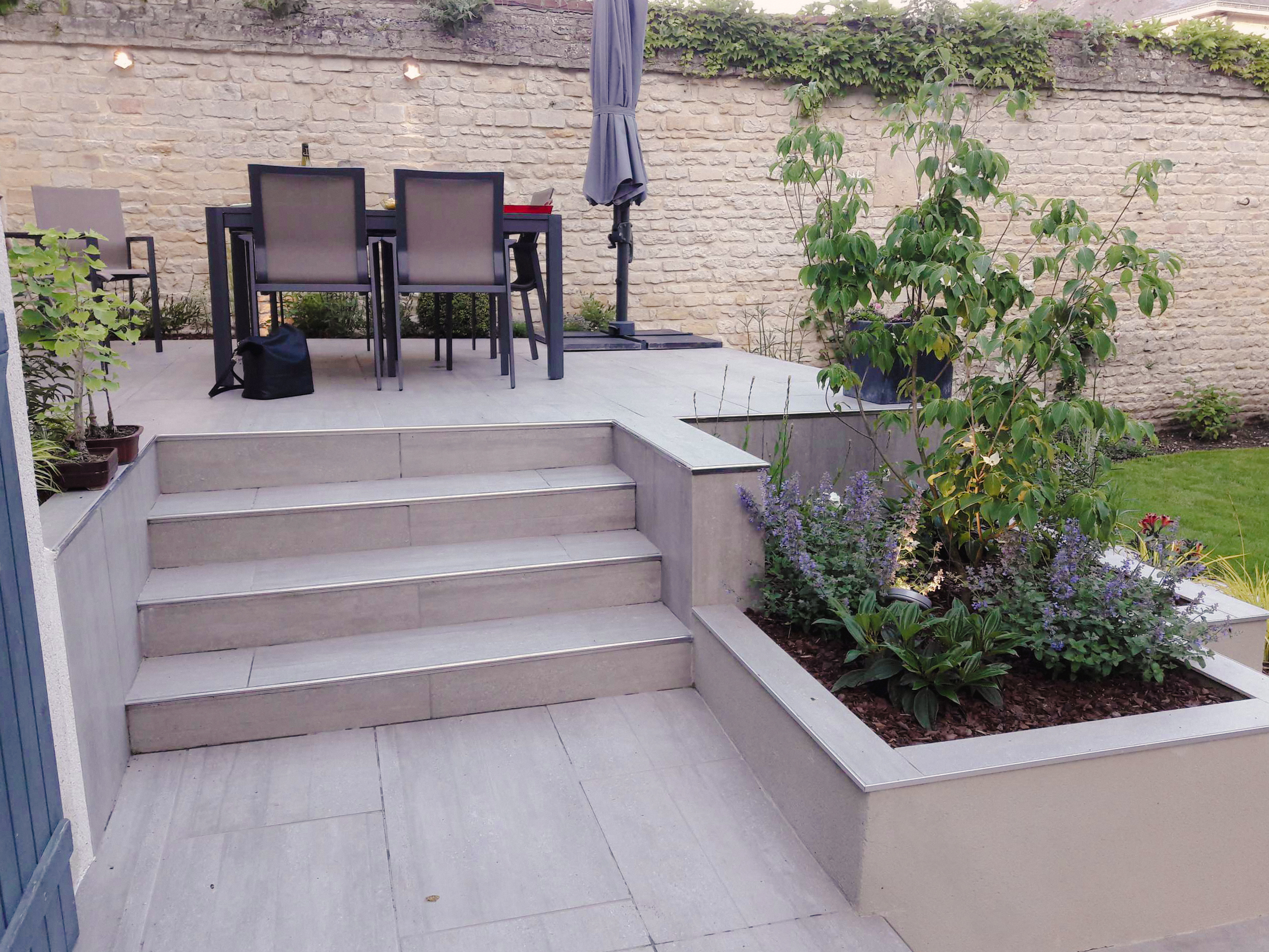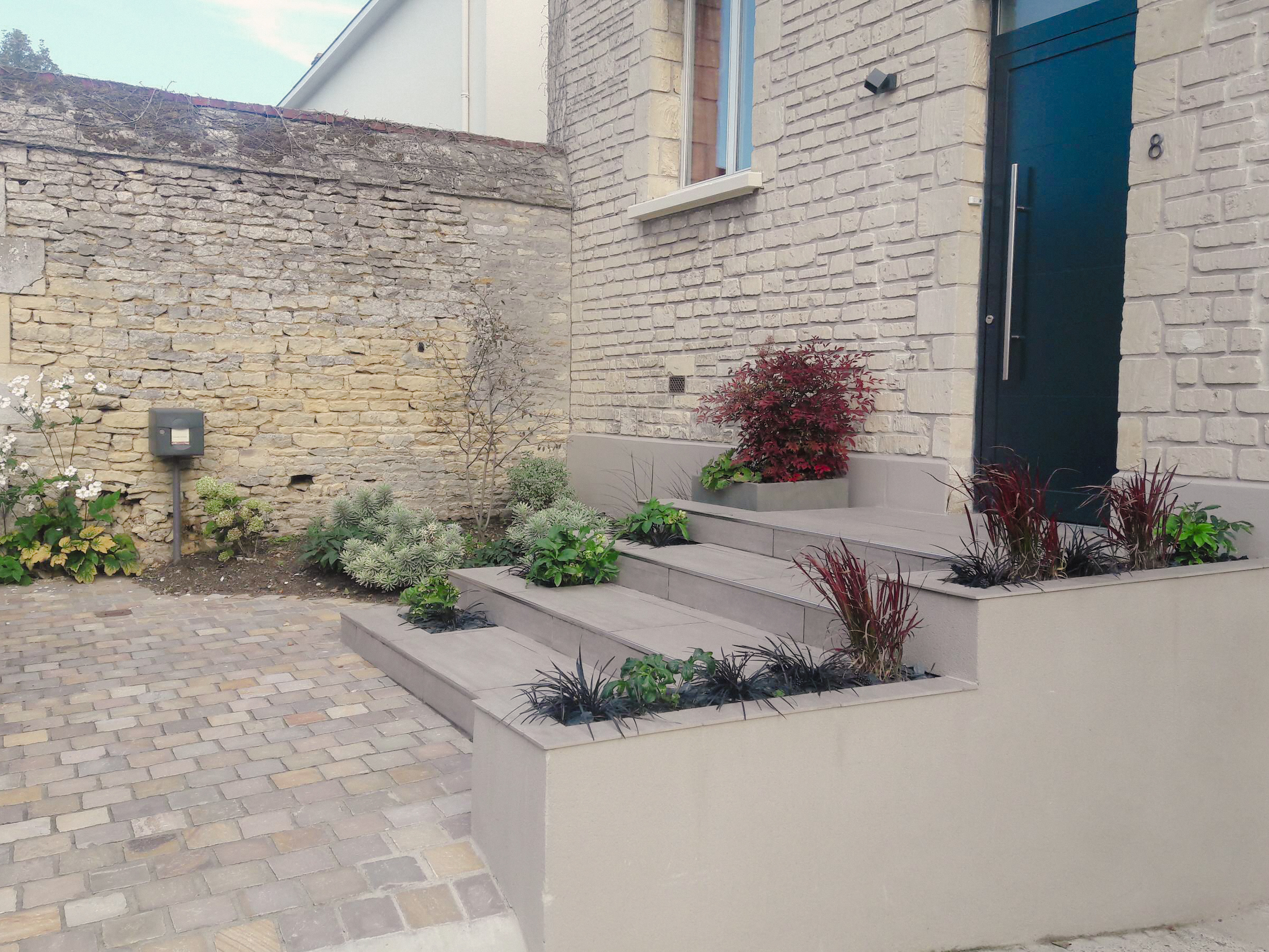 Une entrée plus accueillante pour cette maison de ville était le souhait des clients : un escalier plus large intégrant des jardinières a été créé.