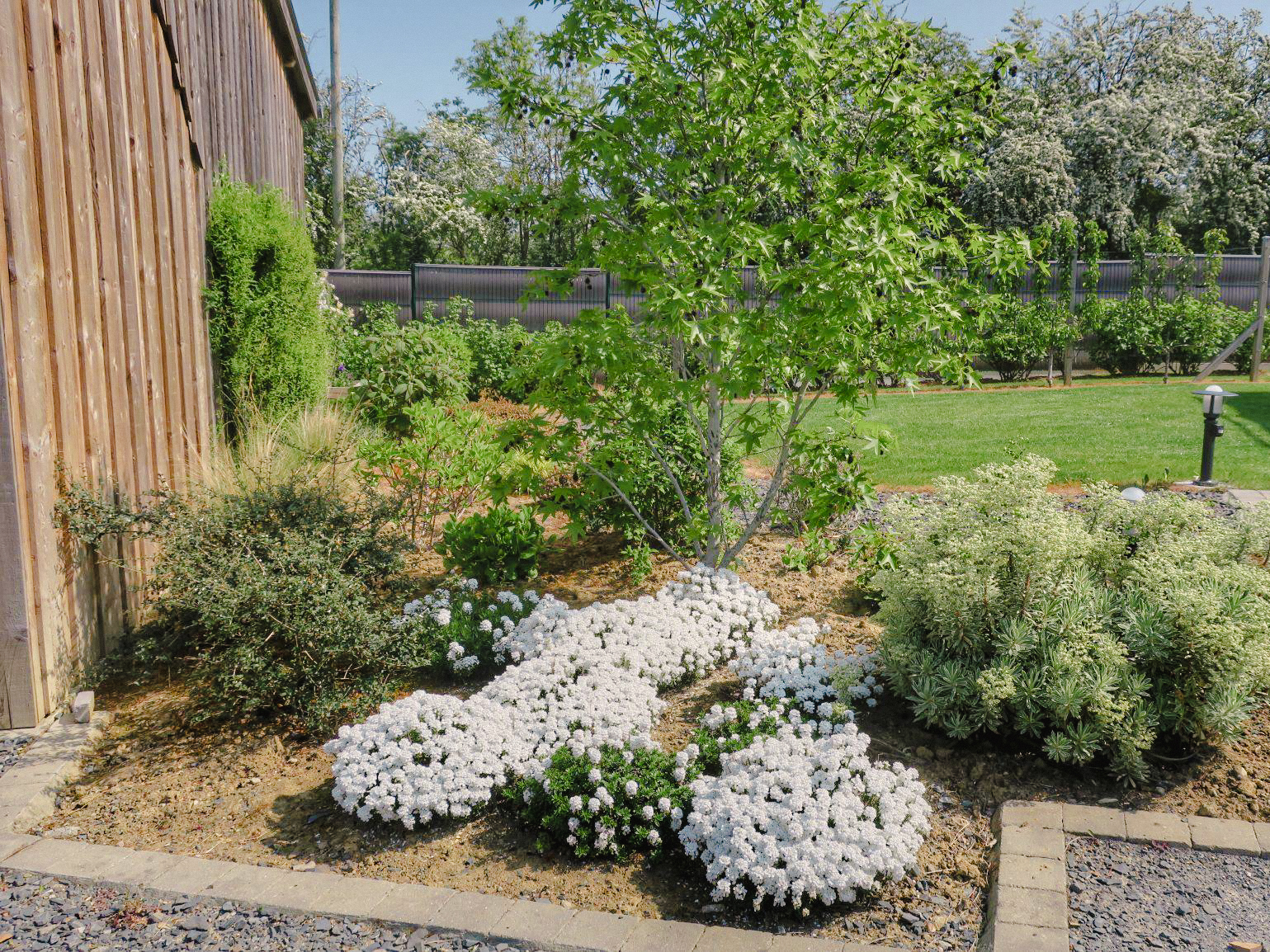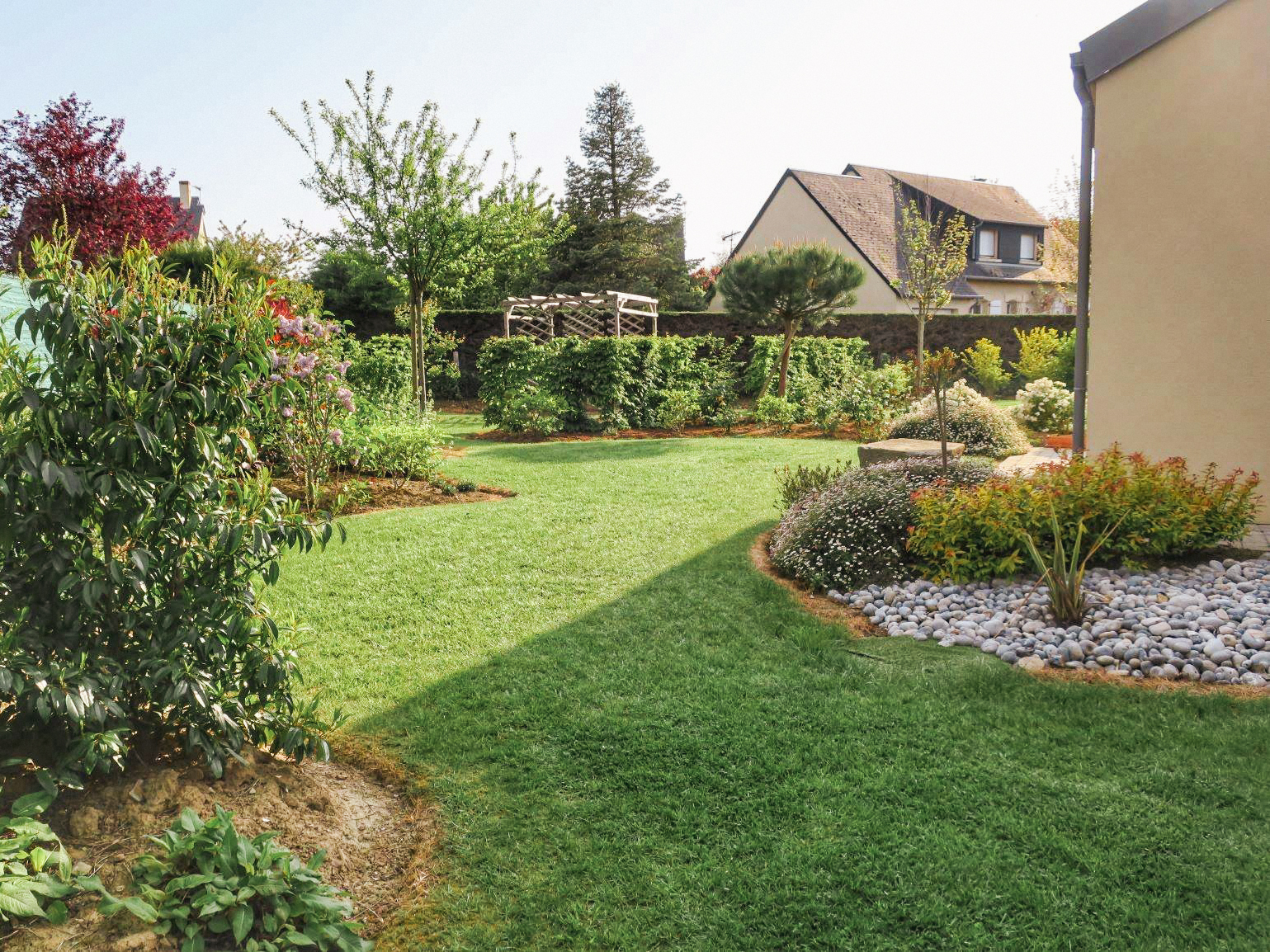 Grand jardin, propice à la balade. Le cheminement au travers des massifs offre diverses ambiances où le banc sur le passage invitera à la contemplation…