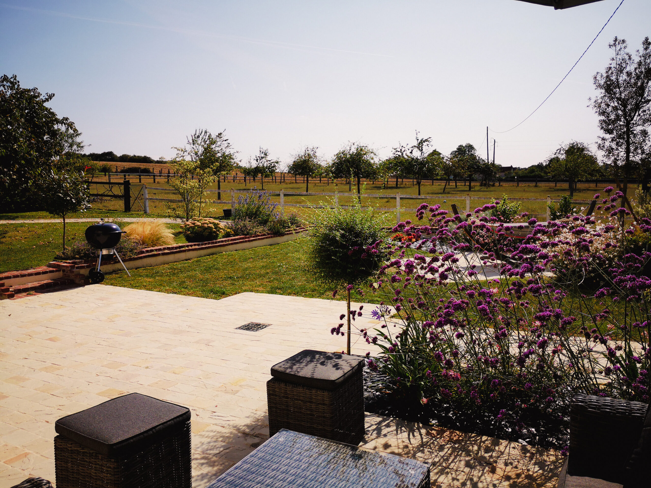 Un jardin avec vue sur la campagne