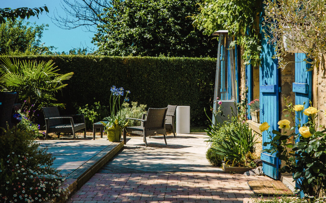 Petit jardin de campagne approche Ce petit jardin de campagne entouré de murs en pierre se devait d’accueillir une grande famille : une grande terrasse en bois a été créée, surélevée d’une marche pour se différencier des circulations. L’allée pour signifier la porte...
