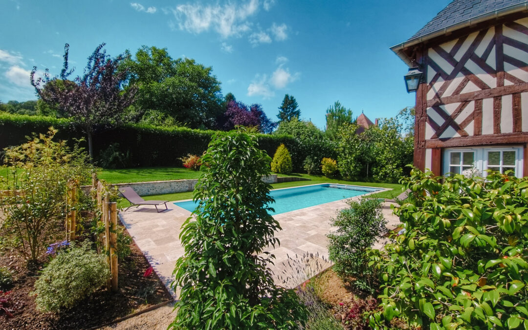 UNE PISCINE POUR UNE MAISON DU PAYS D’AUGE approche Les propriétaires de cette jolie maison à colombages du pays d’auge souhaitaient une piscine. Le terrain était en pente et la partie la plus ensoleillée servait de parking. Un joli muret en silex et...