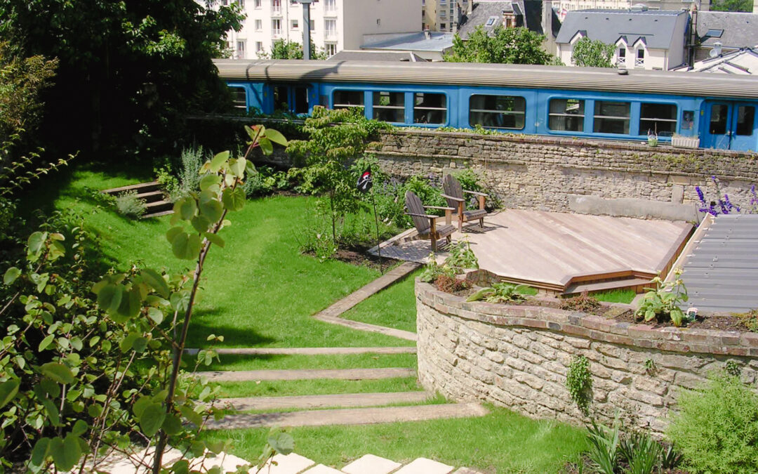 Jardin avec différents niveaux approche Ce jardin de ville avec une pièce à vivre en rez de jardin, était difficilement accessible à cause du dénivelé. Des terrasses en bois sur plusieurs niveaux ont donc été aménagées pour une utilisation fonctionnelle. Des paliers...